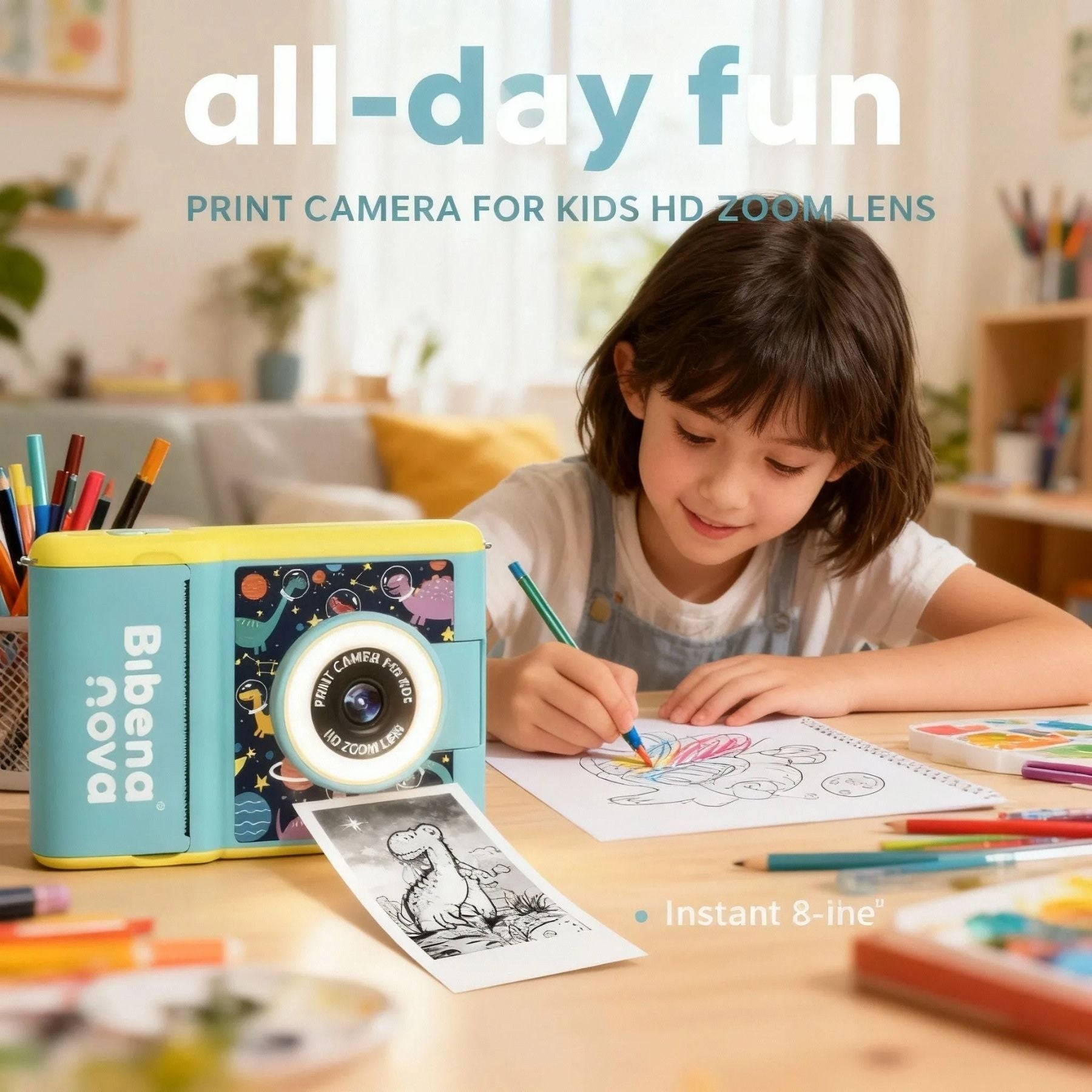 A thoughtfully designed kids’ camera that encourages active creation — every photo becomes a tangible keepsake, sticker, or art project to hold, share, and treasure.