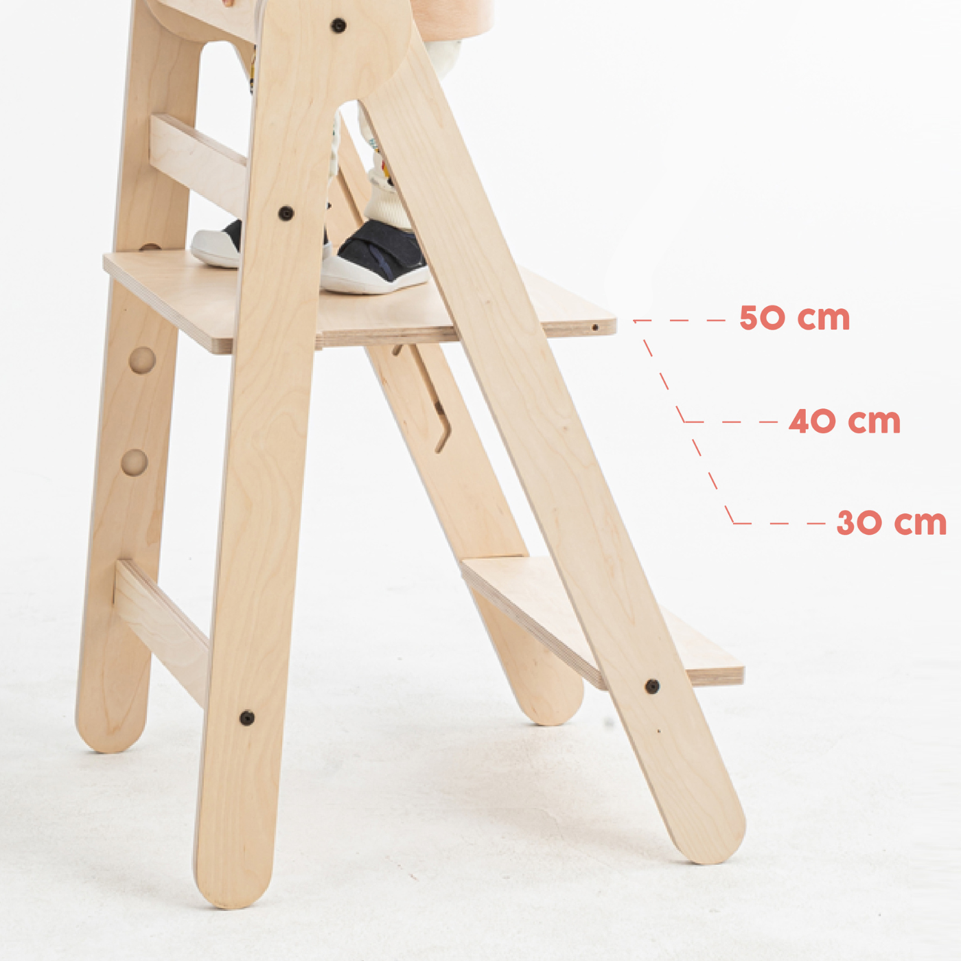 With its foldable structure and natural wooden finish, this tower blends seamlessly into modern homes. It is both practical and stylish, offering a safe platform for your child while being easy to store and move around, making family life smoother and more enjoyable.