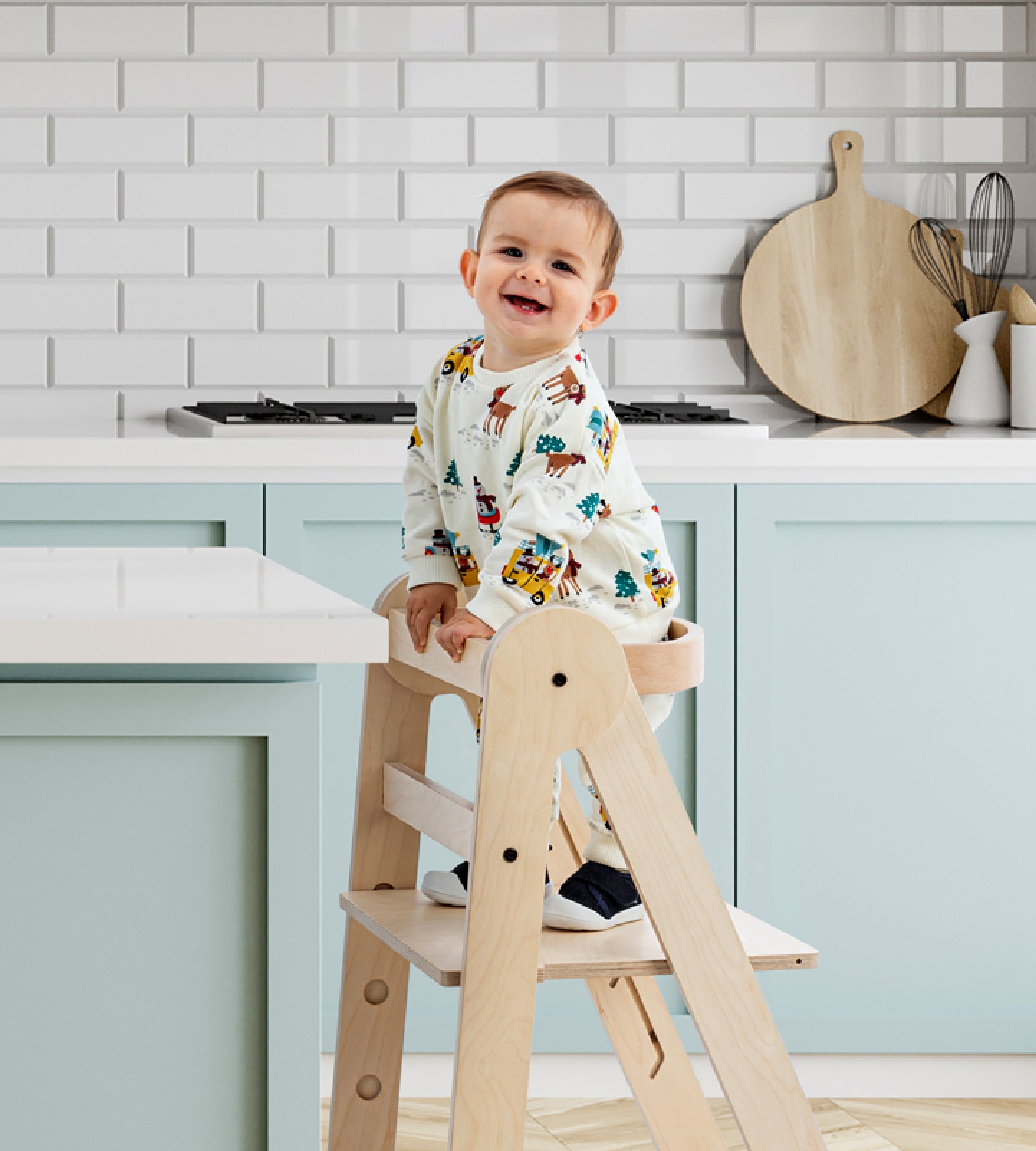 The Folding Learning Tower gives children the confidence to take part in daily family routines, from cooking to crafts. By elevating them safely to counter height, it nurtures independence, creativity, and hands-on learning in a secure environment.