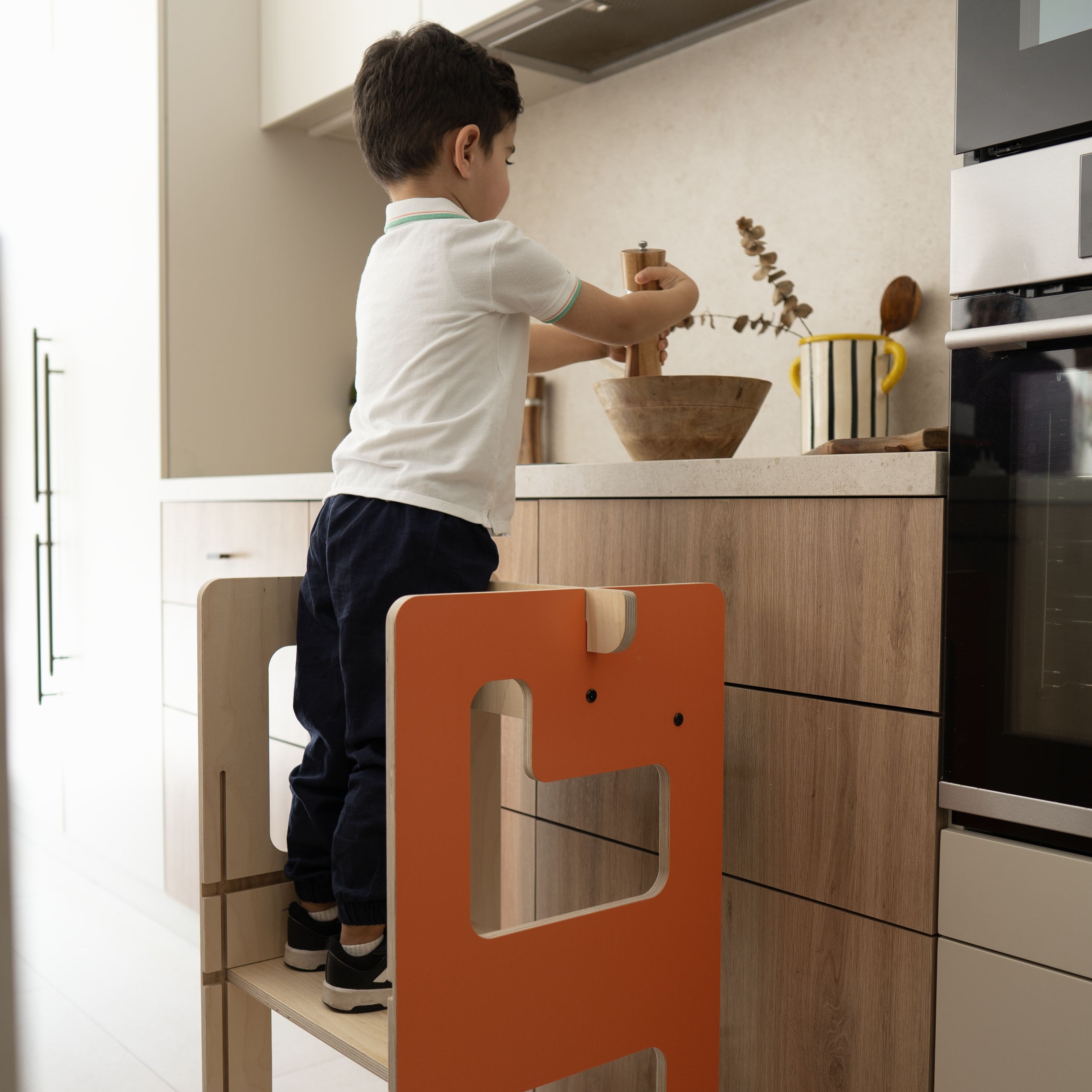 By giving children the right height to safely explore kitchens, counters, and tables, the Kule Flip inspires independence and helps them learn through everyday participation.